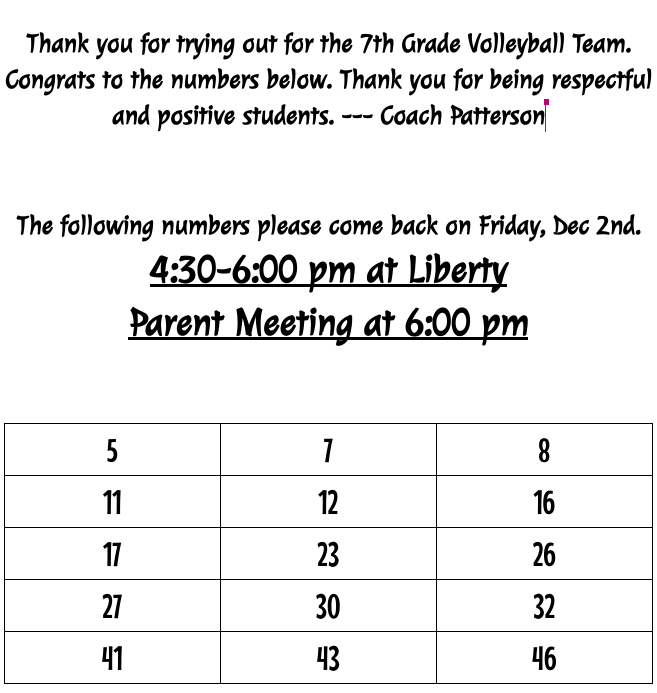 2022-2023 7th Grade Volleyball Team